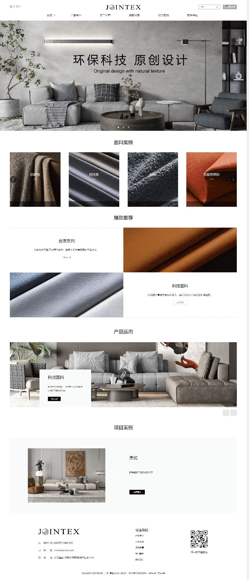 Jointex潛心織造卓越品質,依托于現(xiàn)代®¥化(huà)廠(chǎng)房(fáng)以及先進生(shēng)産設備,研發出一(y¶δī)系列全新科(kē)技(jì)面料,呈現•"(xiàn)天然質感,環保透氣、堅固耐用(yòng)。産品涵蓋皮革系列、機 φ→(jī)織面料、科(kē)技(jì)面料、針織面料、功能(néng)性面料等,以科(kē)技(♦÷Ω>jì)力量賦予家(jiā)居生(shēn εg)命力滿足人(rén)們對(duì)高(gāo)品質的(de)生(shēng→™)活追求。