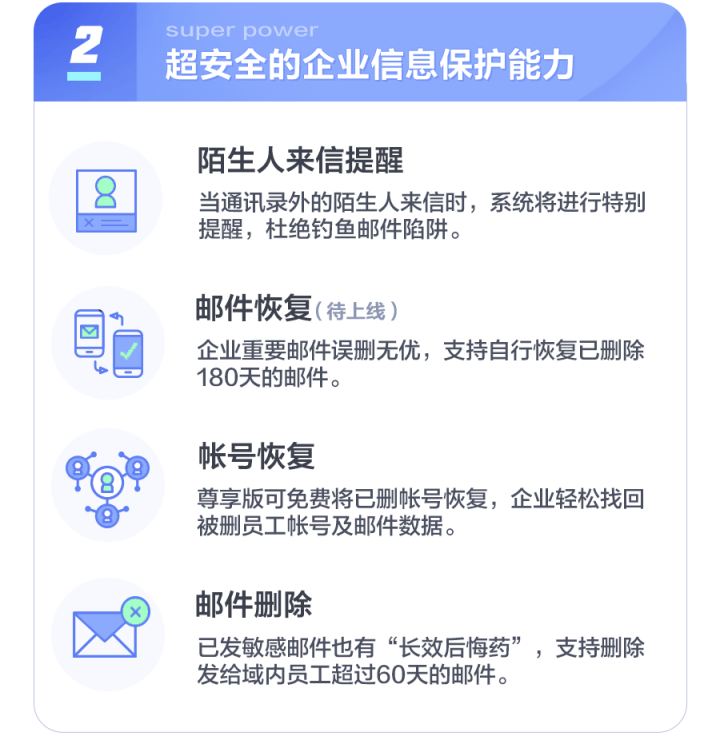 網易企業(yè)郵箱尊享版通(tōng)過技(jì)術(shù)和(hé)功能(né®®÷ng)的(de)全面升級,緻力于為(wèi)企業(yè)打造更加安δ✔全、高(gāo)效和(hé)多(duō)元的(d∑©∞₹e)“郵件(jiàn)+”超能(néng)辦公新方式。