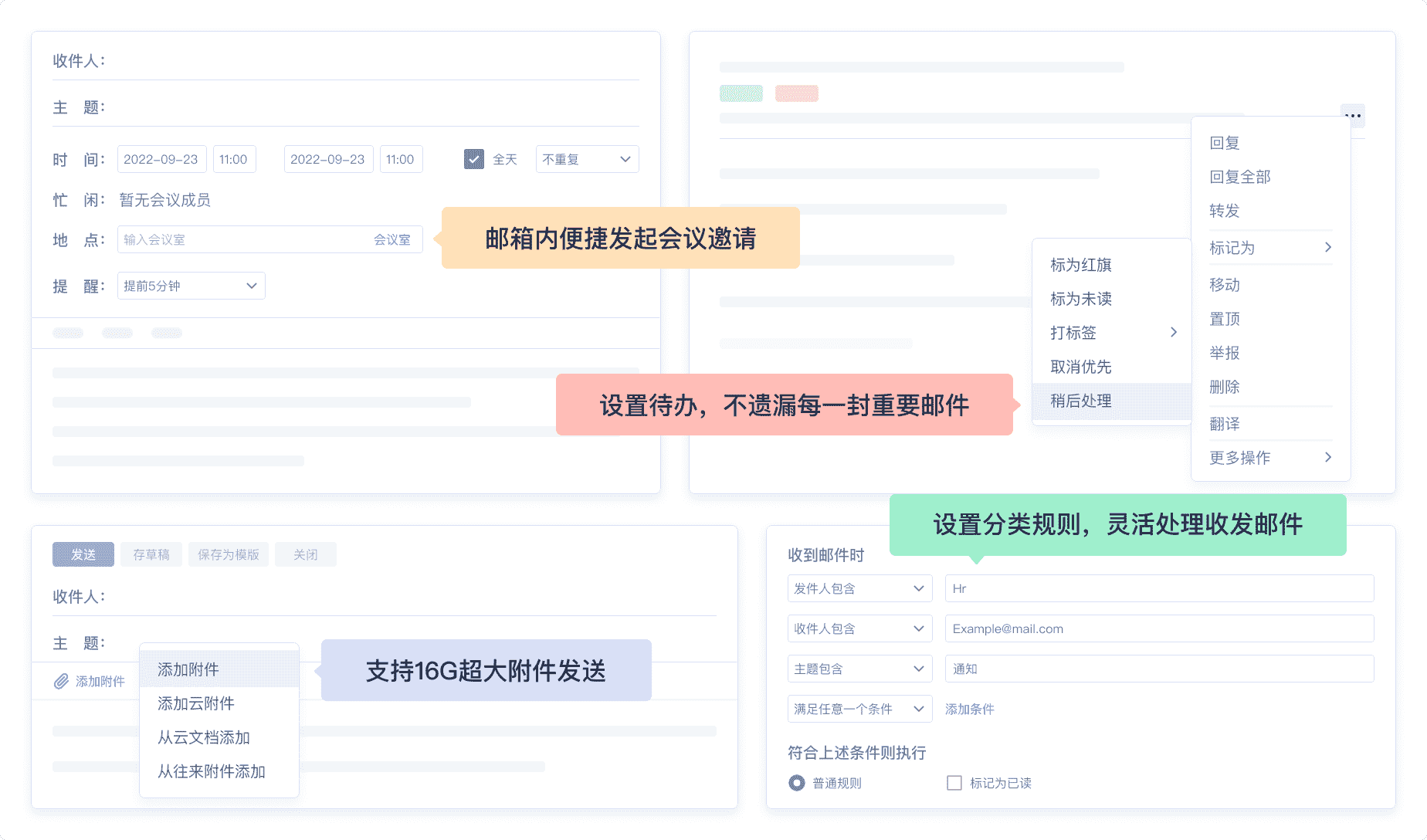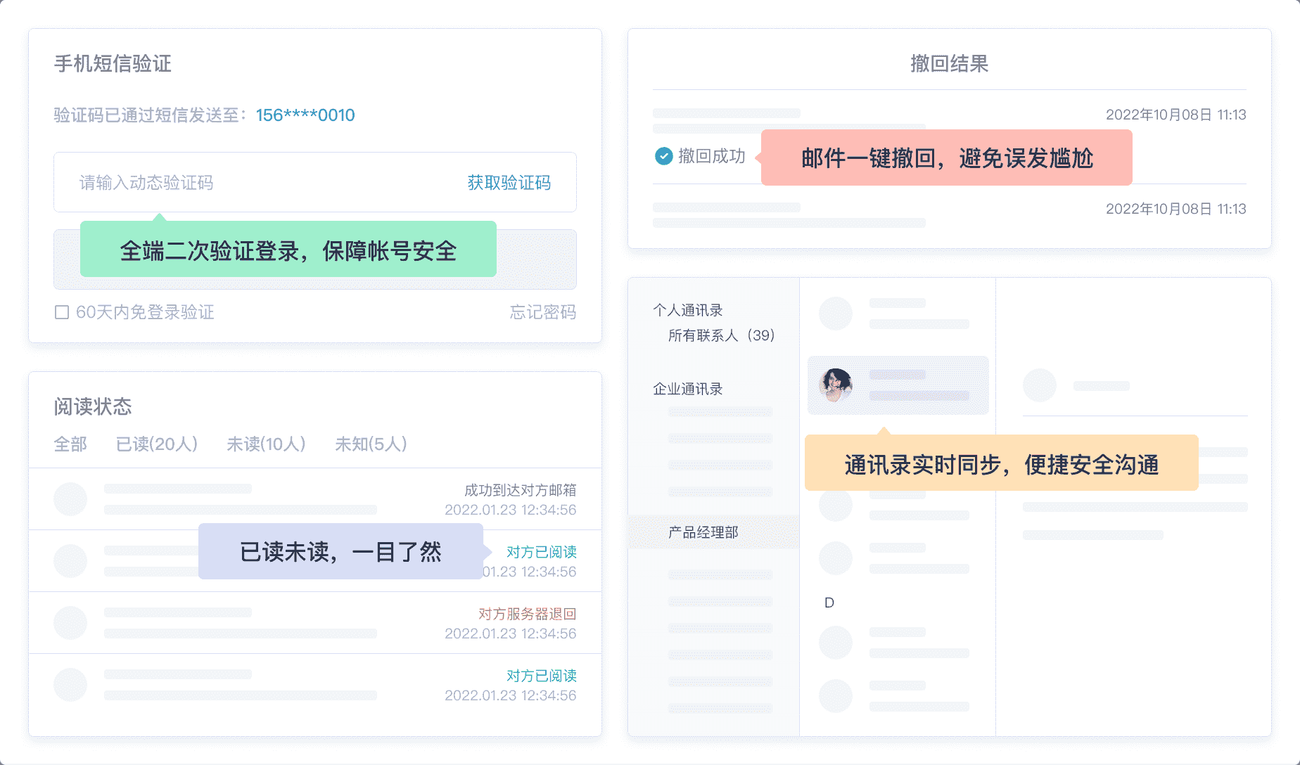 網易企業(yè)郵箱支持郵件(jiàn)群發、撤回、日(rì)曆共享、會(huì)議( ↑¶yì)邀請(qǐng)、閱讀(dú)狀态追蹤等強大(dδ¶à)使用(yòng)功能(néng),成÷π員(yuán)使用(yòng)更便捷