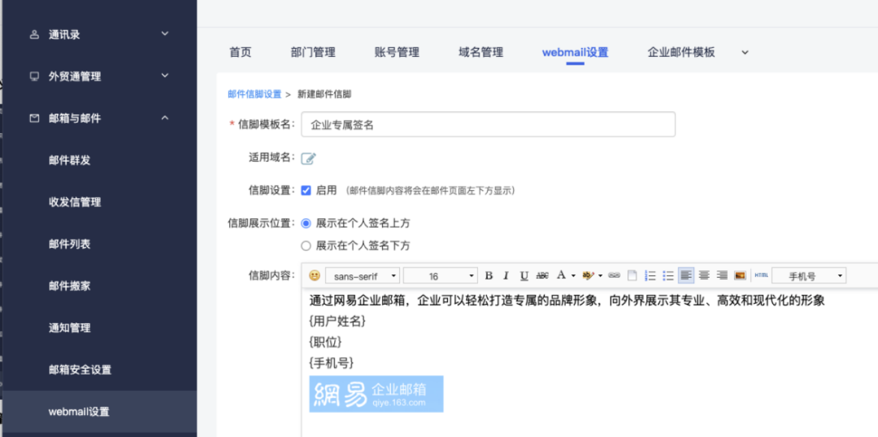統一(yī)管理(lǐ)簽名:後台可(kě)設計(jì)簽名,業(yè)務标語和(hé) logo 徽标可(kě)正式統發宣廣