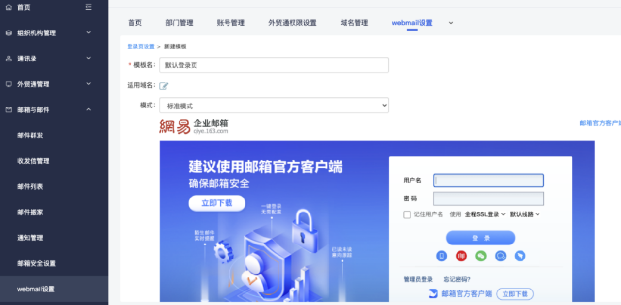 自(zì)定義登錄頁:mail. 域名登錄頁設計(jì)、登錄頁logo和(héε )內(nèi)頁logo均可(kě)設計(jì)。